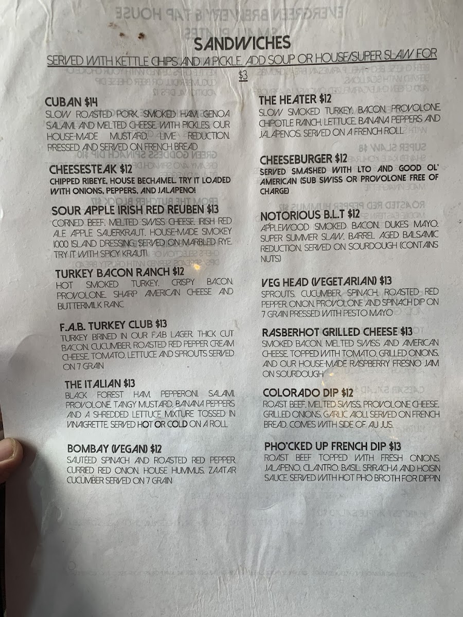 Visitors typically use the menu for casual dining experiences, suitable for brunch or relaxed meals paired with a wide beer selection. The food and drinks cater to those looking for quick orders as well as more substantial plates.